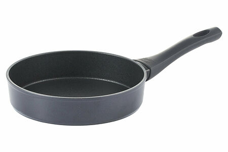Алюминиевая сковорода Gipfel Diamant 52021 20x4,6 см. Изготовлена из кованого алюминия, из которого получаются прочные и легкие сковороды с тонкими стенками и толстым дном. Двухслойное антипригарное покрытие Pfluon Premium облегчает приготовление любых продуктов (мяса, рыбы, яиц, овощей), легко выдерживает интенсивную эксплуатацию. Благодаря устойчивости к царапинам, покрытие допускает использование металлических аксессуаров. Для заботящихся о здоровье неоспоримым достоинством будет экологичность данного покрытия, так как оно не содержит перфтороктановой кислоты. Сковорода выполнена в лаконичном дизайне черного цвета и бакелитовой ручкой с покрытием Soft Touch (удобно держать и не скользит в руке). Толщина дна: 4,0 мм, толщина стенок: 2,5 мм. Сковорода диаметром 20 см идеально подходит для приготовления завтрака (яичницы, омлета), ее быстро и удобно мыть.Рекомендации по использованию и уходу:Не использовать металлические лопатки.Не мыть жесткой металлической губкой и чистящими порошками.Не разрезать приготовленную пищу в посуде.Не подвергать термошоку.Не рекомендуется мыть в посудомоечной машине.Не жарить еду без масла.Можно использовать на всех типах плит.