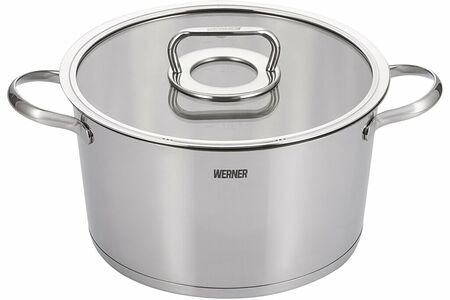 Коллекция из высококлассной нержавеющей стали 18/10 Werner NICE отличается зеркальной поверхностью, трапециевидной формой, расширяющейся к верхнему краю, изящными ручками и стильным переплетением стекла и металла в дизайне.У кастрюли довольно широко расставленные ручки, дающие достаточное пространство для плотного захвата, что делает их и удобными, и оберегающими от ожогов о горячий корпус посуды.С внутренней стороны кастрюли нанесена мерная шкала.Ручка крышки имеет плоский верх, за который очень удобно держаться, и прочно крепится к стальному диску, что исключает ее расшатывание со временем.Кастрюля имеет многослойное капсульное дно, что способствует равномерному распределению тепла при варке, тушении, томлении и сохранению температуры блюда даже после процесса готовки, что позволяет ему настояться и приобрести более насыщенный вкус.Сталь 18/10 - это залог качества, безопасности, неприхотливости и долгой жизни Вашей посуды. Сталь содержит 18% хрома, который наделяет сплав антикоррозийными свойствами, и 10% никеля, обеспечивающего ударопрочность, износостойкость и защиту от микробов.В кастрюле имеется индукционное дно, что позволяет использовать ее на всех видах плит.Объем кастрюли 5л.Высота кастрюли 13,5 см, высота с крышкой 16,5 см.