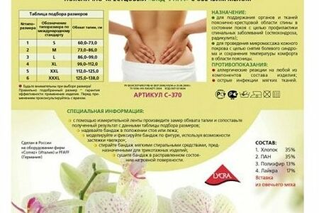Бандаж эластичный компрессионный поддерживающий пояснично-крестцовый БКД-УНГА с овечьим мехом размер 3 доставка