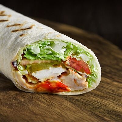 Баранина, лаваш, соус томатный, лук красный, помидор, зелень