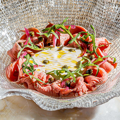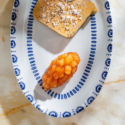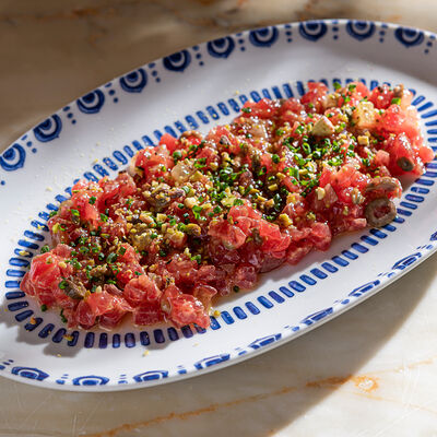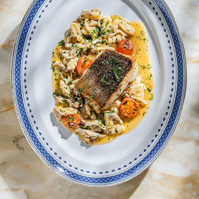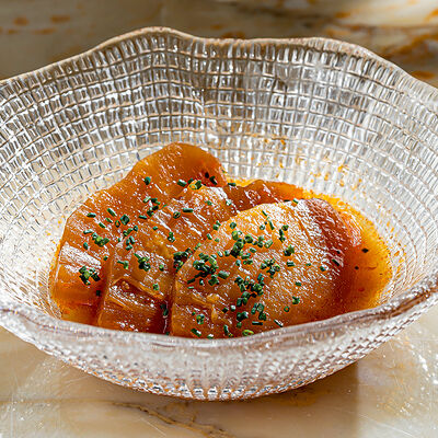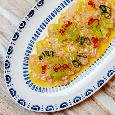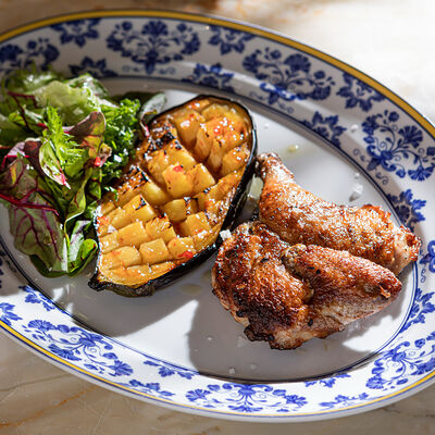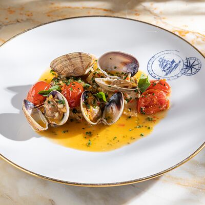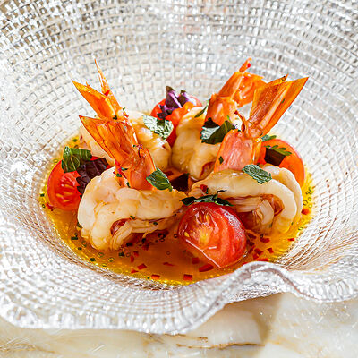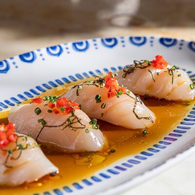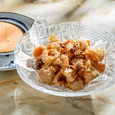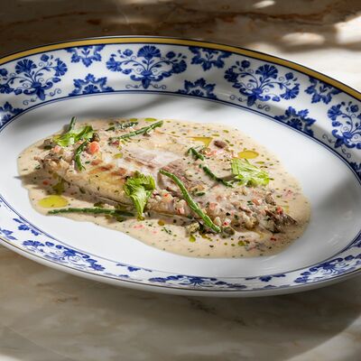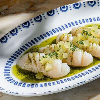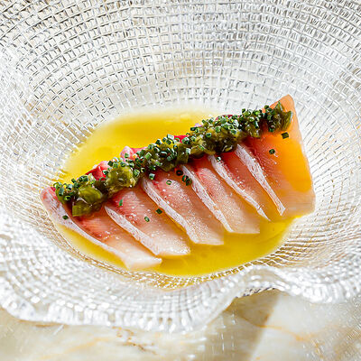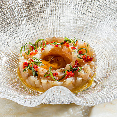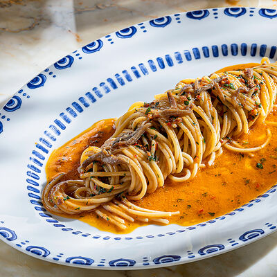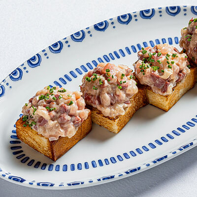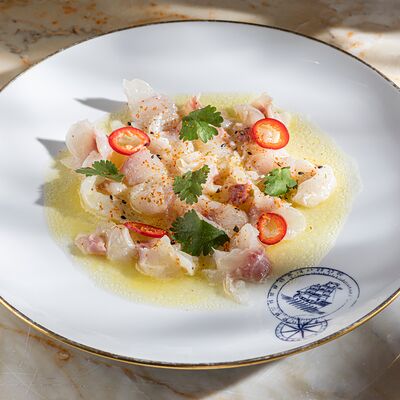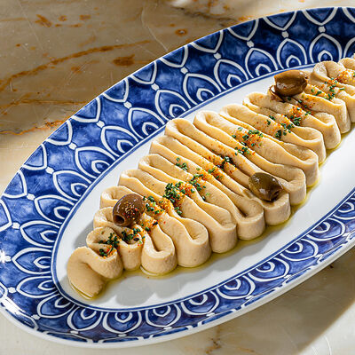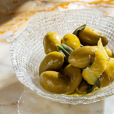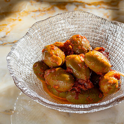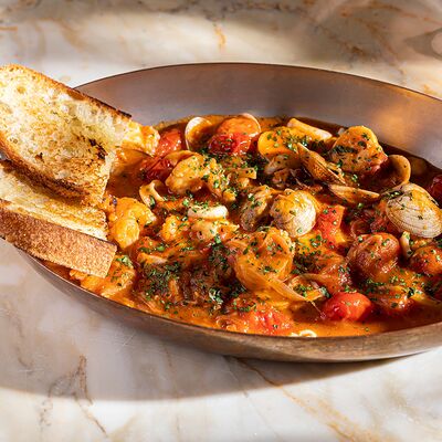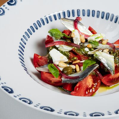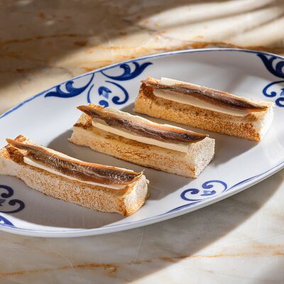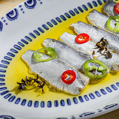 Сардины, тимьян, чеснок, чили перец красный, чили перец зеленый, подается с багетом