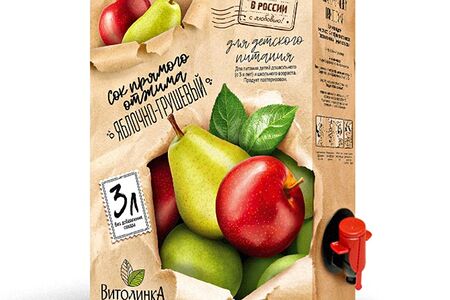 Сок прямого отжима ВитолинкА яблочно-грушевый 3л BiB Россия доставка