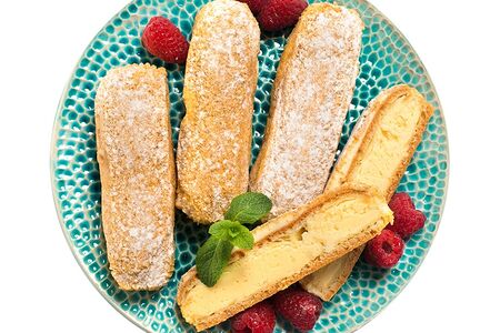 Эклер с ванильной начинкой обсыпной от шеф-кондитера Азбуки Вкуса 1 шт доставка