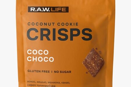 Печенье кокосовое R.A.W.Life Crisps Кокос-Шоколад (без глютена, без сахара) 35г, Россия доставка