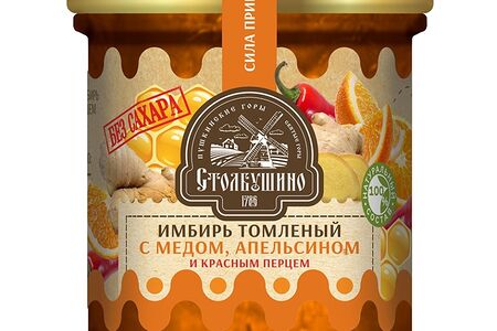 Варенье Столбушино Имбирь томлёный с мёдом, апельсином и красным перцем без сахара доставка