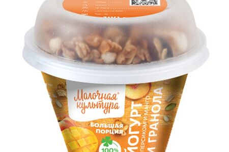 Йогурт Молочная Культура с персиком манго и гранолой с изюмом 2.7-3.5%, 190г доставка