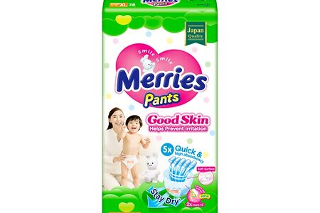 Трусики-подгузники Merries Good Skin XL 12-19кг, 38 шт. доставка