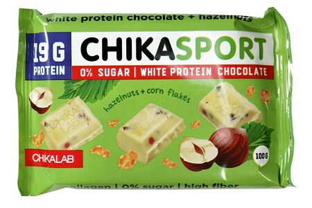 Шоколад протеиновый ChikaSport белый с фундуком 19% доставка