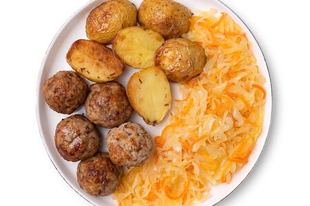 Фрикадельки шведские мясные TASTE OF Уже Готово с гарниром из картофеля беби и тушеной капусты доставка