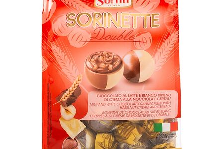 Шоколадные конфеты Sorini из молочного и белого шоколада с начинкой из орехового крема с зерновыми DOUBLE 200г, Италия доставка