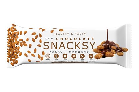 Батончик Raw chocolate с какао и миндалём, Snacksy, 55 г, Россия доставка