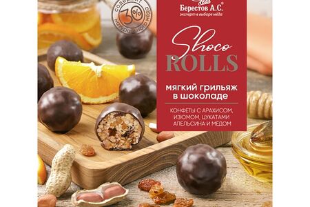 Конфеты Shoco Rolls с арахисом, изюмом, цукатами апельсина и медом TM Galagancha (Галаганча) доставка