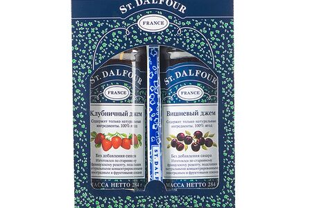 Подарочный набор St.Dalfour джем из клубники 284 г, джем из вишни 284 г + фарфоровая ложка, Франция доставка