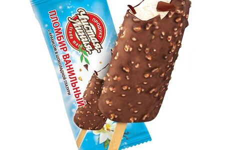 Мороженое Чистая Линия пломбир крем-брюле с арахисом в шоколадной глазури, эскимо доставка