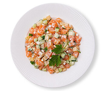 Салат Скандинавский с семгой малосоленой, яблоком и соусом Айоли от бренд-шефа АВ доставка