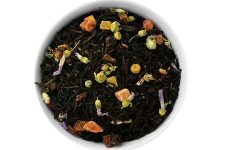 Купаж индийского, цейлонского и китайского черного чая, цукаты папайи, ароматизатор, кусочки груши, зёрна и цветки граната, лепестки мальвы