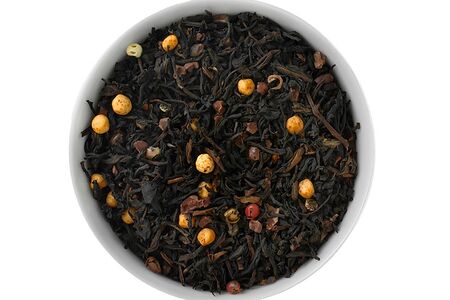 Купаж цейлонского и индийского чёрного чая, кусочки какао, розовый перец, кусочки белого шоколада, чили