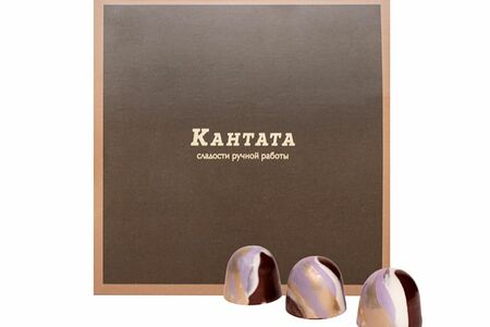 Белый шоколад, тёмный шоколад, пюре из чёрной смородины, сливки, миндальная паста, какао-масло, сироп глюкозы, ликер, ягода аронии (9 шт). Кбжу: 441/5,3/32/33,1