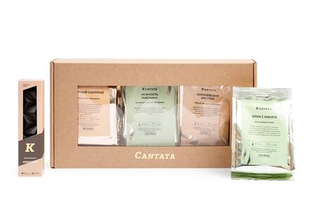 В подарке, украшенном изящным бантом, собрана коллекция из четырех ароматных купажей чая (два черных и два зеленых), которые дополняет шоколад ручной работы. Размер коробки: 16 х 29 см