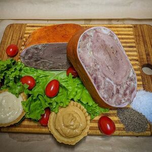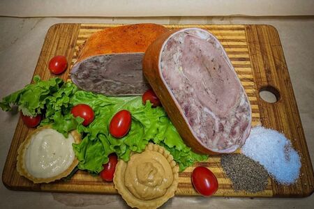 Свинина, свиные головы, печень свиная, сердце свиное, соль пищевая, специи, желатин