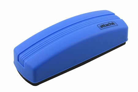 Губка предназначена для стирания маркеров с белых досок сухим способом. Оснащена магнитной пластиной для крепления к доске.Размер 160 55 45 мм. Губка используется без сменных салфеток.Корпус синего цвета, фетр черного цвета.Обращаем внимание, что для эффективного удаления с магнитно маркерной доски засохших записей рекомендуем использовать губку в сочетании со спреем для магнитно маркерных досок (например: арт. 134430, 934504, 176550). Спрей необходимо распылить на доску, а затем стереть остатки надписи губкой.