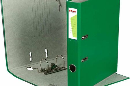 Папка-регистратор с арочным механизмом Комус подходит для хранения документов в большом количестве. Формат А4, размер 317 280 мм. Изготовлена из плотного картона, покрытого бумвинилом зеленого цвета. Внутренняя вклейка бумажная. Арочный механизм произведен в Чехии. Нижние края папки защищены от повреждений металлическим кантом. На корешке шириной 50 мм имеется карман со сменной этикеткой и кольцо для захвата. Благодаря прорезям для колец на внешней крышке папка-регистратор Комус остается закрытой даже при большом количестве бумаг. Размер кармана 3,5 16 см. Размер кармана на корешке папки может быть разным, в зависимости от производителя папок.Цвет папки может быть насыщенным, либо более светлым в зависимости от производителя папок.