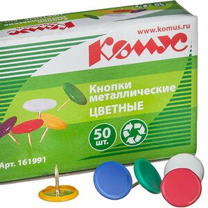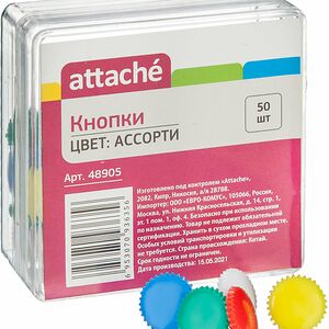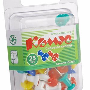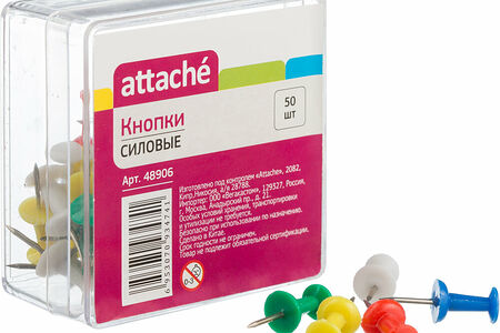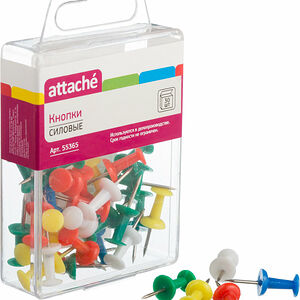 Кнопки силовые с пластиковым цветным держателем, Длинакнопки 22.5, длина иглы 11 мм.Пластиковый бокс удобен для хранения и защищаетот самопроизвольного высыпания кнопок. В коробке 50 штуккнопок силовых разного цвета. Используются для крепления информациик доскам пробкового типа, для планирования и отметок.