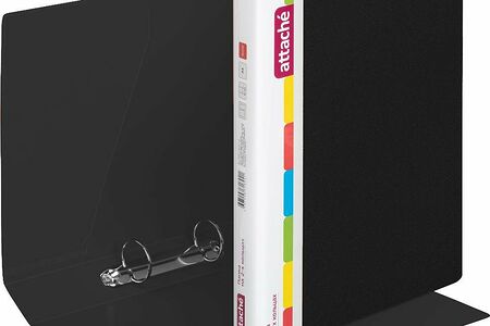 Папка на кольцах рекомендуются как для временного, так и длительного хранения, систематизации, архивирования документов. Такие папки используются в работе офисными сотрудниками различных специальностей, направлений, должностей. Можно использовать для домашних документов. Папка на двух кольцах Attache изготовлена из листового полипропилена толщиной 0,7 мм черного цвета. Формат А4. Снабжена механизмом на двух O-кольцах. Диаметр кольца - 25 мм. На внутренней стороне обложки есть прозрачный карман для документов. Корешок шириной 32 мм имеет карман для сменной этикетки. Папка на кольцах вмещает до 200 листов стандартной плотности.