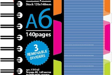 Бизнес-тетрадь Spiral Book формата А6, 140 листов. Обложка с вырубкой из жесткого экологичного прозрачного пластика с волнистым рельефом, двойная толстая евроспираль, увеличенного диаметра. Пластиковые съемные разделители. Первый лист из плотной бумаги с запечаткой, разлиновка в клетку с аккуратными полями. Синий Дизайн. Размер блока 102 142 мм.