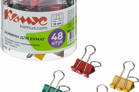 Зажимы для бумаг 19мм 48шт./уп. Комус цветные, в пласт. боксе доставка