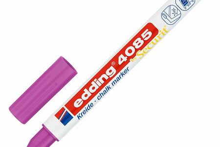Меловой маркер edding 4085. Цвет малиновый. Предназначен для нанесения рисунков и надписей на гладкие поверхности, такие как стекло, кафель, пластик, меловые доски (в том числе черные). Легко стираются влажной салфеткой.Чернила этого маркера ни что иное как жидкий мел на водной основе без каких-либо примесей, поэтому данный маркер прекрасно подходит для детей. Edding 4085 отличный инструмент для воплощения творческих идей дома, но так же рекомендуется для использования в офисах, ресторанах, стекольной и других видах промышленности.Уникальная особенность серии edding 4085 наличие необычных цветов и тонкая линия письма всего 1 2 мм, что является большой редкостью для меловых маркеров. Форма наконечника: круглая. Перед использованием маркера требуется произвести его активацию в соответствии с инструкцией.