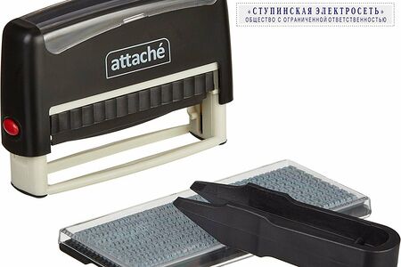 Штамп самонаборный Attache предназначен для самостоятельного создания и изменения текста оттиска. Компактный и надежный пластиковый корпус с автоматическим поворотным окрашивающим механизмом. На корпусе расположено информационное окно для корпоративной или личной персонализации. Легкая и чистая замена штемпельной подушки. Оптимальный набор букв, цифр и символов на двух ножках. Размер поля 70 10 мм, 2 строки. В одну строку большими символами (заглавными) входит 28 символов, строчным (маленьким) шрифтом 35.Комплектация: штамп с рифленой пластиной для набора; одна касса букв: русские буквы, цифры, символы, 3 мм х 360 знаков; синяя сменная штемпельная подушка, пинцет. Внимание! При использовании для набора текста широких символов (Ж, М, Ф, Ш, Щ, Ю, Ы), цифр, пробелов данные по максимальной вместимости символов будут снижаться. Также символы рекомендуется размещать с отступом от края (внутрь) в
