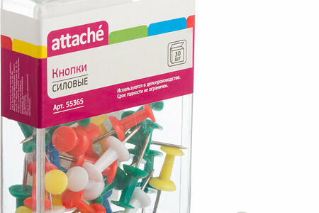 Силовые кнопки используются для крепления информации к доскам пробкового типа, для планирования и отметок. В коробке 30 штук разных цветов. Кнопки имеют металлическое прочное основание в виде иголки, которое втыкается в поверхность, и пластиковую цветную шляпку. Размер коробки 70 45 10 мм. Длина кнопки со шляпкой 22.5 мм, длина иглы 11 мм.
