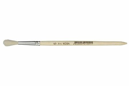 Кисть 1 School коза круглая 5. Кисть производится из волоса козы (хвост, борода), не имеет вершинки, не собирается в конус. Цвет пучка кисти белый. Кисть имеет короткую (18.5 см), деревянную ручку. Кисть предназначена для работ с водорастворимыми красками и клеями.Поставляется без упаковки.