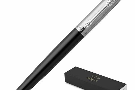 Шариковая ручка Parker Jotter имеет корпус из качественного нержавеющей стали черного цвета. Детали отделки стальное покрытие. Оснащена кнопочным механизмом. Комплектуется индивидуальным футляром и стержнем с пастой синего цвета. Толщина линии письма 0,8 мм. Parker создал ручку Jotter в 1954 г. Она имела исключительно вместительный стержень и шарик стержня, который изнашивался равномерно, что гарантировало долгий срок службы и отличное качество письма. На сегодня продано более 800 млн экземпляров ручки Jotter.