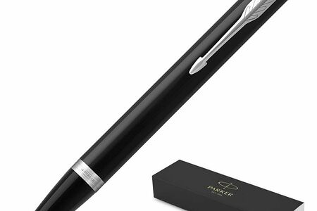 Шариковая ручка Parker IM из обновленной коллекции IM. Основные особенности нового дизайна: новыйзажим-стрела с тремя широкими перьями, укороченная форма торца на колпачке, широкое кольцо на корпусе теперь состоит из трех соединенных вместе колец, на среднем выполнена гравировка логотипа Parker. Диаметр шарика 1,0 мм. Толщина линии письма 0,8 мм. Ручка оснащается кнопочным механизмом нажимного действия. Корпус шариковой ручки выполнен из латуни и покрыт глянцевым лаком черного цвета, детали дизайна покрыты хромом. Ручка поставляется в престижной подарочной коробке с обновленным дизайном. В комплекте также присутствует один стержень синего цвета.