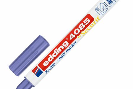 Меловой маркер edding 4085. Цвет фиолетовый металлик. Предназначен для нанесения рисунков и надписей на гладкие поверхности, такие как стекло, кафель, пластик, меловые доски (в том числе черные). Легко стираются влажной салфеткой.Чернила этого маркера ни что иное как жидкий мел на водной основе без каких-либо примесей, поэтому данный маркер прекрасно подходит для детей. Edding 4085 отличный инструмент для воплощения творческих идей дома, но так же рекомендуется для использования в офисах, ресторанах, стекольной и других видах промышленности.Уникальная особенность серии edding 4085 наличие необычных цветов и тонкая линия письма всего 1 2 мм, что является большой редкостью для меловых маркеров. Форма наконечника: круглая. Перед использованием маркера требуется произвести его активацию в соответствии с инструкцией.