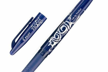 Гелевая ручка со стираемыми чернилами.Резиночка-ластик встроена в корпус. Синий цвет чернил соответствует цвету корпуса. Диаметр шарика 0,7 мм. Толщина линии 0,35 мм.