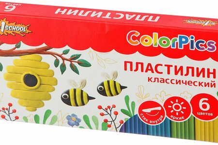 Пластилин классический №1 School ColorPics набор 6цв 120г со стеком доставка