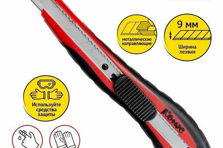 Нож канцелярский – полезная и удобная вещь для точной и аккуратной работы. Он оснащён эргономичной ребристой рукояткой и острым сегментированным лезвием, ширина которого – 9 мм, а толщина – 0.4 мм. Такой инструмент без труда справляется с различными материалами. Корпус канцелярского ножа выполнен из пластика. Материал лезвия – сталь. Нож канцелярский строительный отличается высокой прочностью. Поэтому он будет долгое время радовать в работе. Кроме того, у ножа есть механизм фиксации лезвия, тип – автоматический. Он позволяет без труда отрегулировать длину режущей части и надёжно закрепить её положение. Инструмент отлично подходит, например, для разрезания бумаги, картона, распечатывания корреспонденции и посылок, а также при ремонтных работах, не требующих больших усилий. Обратите внимание: товар поставляется в нескольких вариантах цвета/дизайна (без возможности выбора). Меры предосторожности: – при работе с лезвиями используйте средства защиты; – не утилизируйте лезвия с бытовыми отходами; – хранить в недоступном для детей месте.