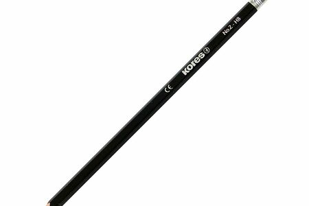 Карандаш чернографитный Kores в черном шестигранном деревянном корпусе. Простые карандаши с ластиком поставляются заточенными. Ластик из ПВХ. Твердость грифеля HB. Высококачественный и прочный, грифель не сломается даже при падении и ударе. Длина карандаша 185 мм.