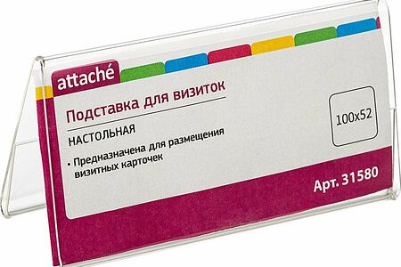 Горизонтальная двухсторонняя настольная подставка Attache. Предназначена для размещения информации.Изготовлена из прозрачного акрилового оргстекла. Толщина акрила 1,5 мм. Поставляется в защитной пленке. Размеры (ВxШxГ): 52 100 40 мм.