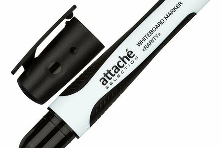 Высококачественный маркер Attache Selection Rarity предназначен для письма на белых досках с магнитно маркерной поверхностью.Маркер для доски черного цвета обладает круглым пластиковым корпусом белого цвета. Корпус оснащен удобной прорезиненной зоной захвата для более удобного использования. Наконечник круглой формы обеспечивает толщину линии письма 2 3 мм, что позволяет писать крупным шрифтом, который будет хорошо виден. Основа чернил спиртовая. Чернила быстро высыхают и не оставляют разводов, легко стираются сухой губкой. Изделие не перезаправляется. Цвет колпачка и прорезиненной вставки на корпусе соответствует цвету чернил. Клип на колпачке позволяет закрепить маркер при необходимости.Маркеры для доски Attache Selection это отличное качество и стильный дизайн!Внимание! Маркеры для досок необходимо хранить в горизонтальном положении или фетром вниз.