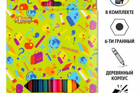 Карандаши цветные №1 School деревянные, шестигранные, толщина грифеля 2.65 мм, 18 цветов доставка