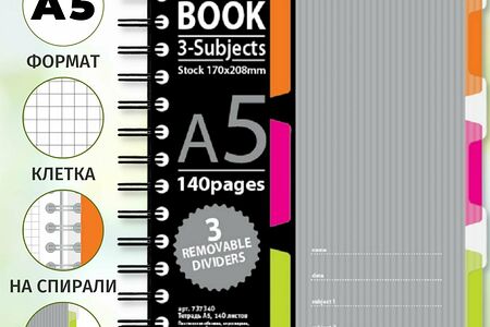 Тетрадь общая на пружине для записей и учебы в клетку формата А5 140 листов. Тетрадь пригодится и дома и на работе вместо ежедневника или блокнота для заметок и планов. Бизнес-тетрадь Spiral Book формата А5, 140 листов. Обложка с вырубкой из жесткого экологичного прозрачного пластика с волнистым рельефом, двойная толстая евроспираль, увеличенного диаметра. Пластиковые съемные разделители. Первый лист из плотной бумаги с запечаткой, разлиновка в клетку с аккуратными полями. Серый Дизайн. Размер - 147x204 мм. Тетрадка предназначена для записей школьников в средних и старших классах школы, использования студентами для записи конспектов и лекций.