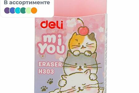 Ластик прямоугольный Deli EH303 MiYou 40x22x12мм ассорти картонная упаковка доставка
