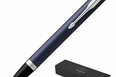 Шариковая ручка Parker IM из обновленной коллекции IM. Основные особенности нового дизайна: новыйзажим-стрела с тремя широкими перьями, укороченная форма торца на колпачке, широкое кольцо на корпусе теперь состоит из трех соединенных вместе колец, на среднем выполнена гравировка логотипа Parker. Толщина линии письма 0,8 мм. Ручка оснащается кнопочным механизмом нажимного действия. Корпус шариковой ручки выполнен из латуни и покрыт матовым лаком темно-синего цвета, отдельные элементы дизайна покрыты хромом, зона захвата изготовлена из блестящего пластика. Ручка поставляется в престижной подарочной коробке с обновленным дизайном. В комплекте также присутствует один стержень синего цвета.
