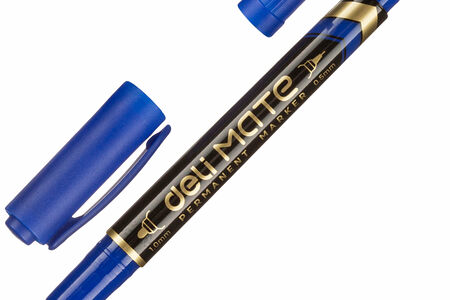 Маркер синий перманентный двусторонний Mate в прочном пластиком корпусе. Нестираемые светостойкие чернила на спиртовой основе. Предназначены для письма на любой поверхности: бумага, полиэтилен, дерево, стекло, металл, натуральная кожа, ткань, камень, плитка. Форма наконечника: тонкая, круглая. Минимальная толщина линии письма 0,5 мм, на другой стороне расположен стрежень с максимальной толщиной линии 1 мм.
