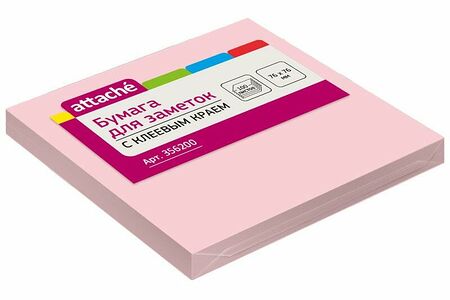 Стикеры Attache в формате 76 76 мм, розового цвета. Идеально подойдут для сотрудников творческих профессий и руководителей: рекомедуются для использования в процессе совещаний, обучения, мозговых штурмов. Тон стикеров пастельный. Плотность бумаги составляет 62 г/кв.м, клейкий слой 22Н/м. В упаковке 100 листов, в блистере. После удаления бумаги на поверхности не остается следов клеевого состава, лист можно крепить повторно. Особых условий хранения не требует, сертификации не подлежит, срок годности не ограничен. Длина клейкой стороны 76 мм.Чтобы увеличить срок службы стикеров, пожалуйста, следуйте рекомендациям:1) Отделять стикер от блока следует вдоль клеевой полосы. Так можно избежать скручивания и последующего отклеивания стикера.2) Прежде чем наклеивать стикер, убедитесь в отсутствии грязи и пыли на поверхности. На чистой поверхно