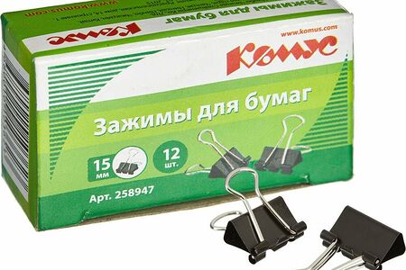 Зажимы для бумаг 15мм 12шт./уп. Комус, в картонной коробке доставка